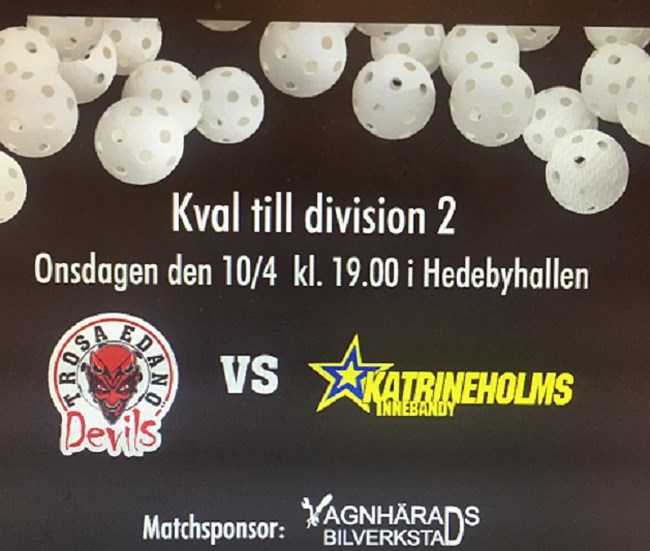 Nu på onsdag så avgörs kvalet till H2 nästa säsong. Det blir en helt avgörande match mot Katrineholms IBF kl 19.00 i vår hemmaborg! Förutsättningarna är givna - våra killar måste vinna!! Då Katrineholm aviserat att de kommer med en busslast supportrar så är det av yttersta vikt att vi ALLA tar oss till hallen för att stötta våra killar. Ta med grannen, sambom, kompisen - MEN KOM! Kafeterian kommer att vara öppen redan från 16.00 för er som kommer tidigt för att vara säkra på att få en bra plats! Forza Devils!! Trosa Edanö IBK 8 apr 2019 0kommentarer