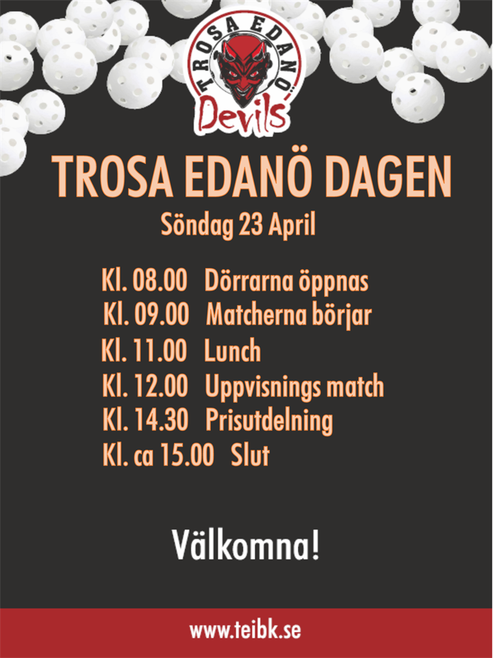 Välkommna till årets avslutning av säsongen!! Söndagen 23:e April! kl.08:00 Dörrarna öppnas Kl.09:00 Matcherna börjar Kl.11:00 Lunch Kl.12:00 Uppvisningsmatch Kl. 14:30 Prisutdelning. Kl.ca 15:00 Slut, Varmt välkommna önskar Styrelsen!! Trosa Edanö IBK 21 apr 2017 0kommentarer