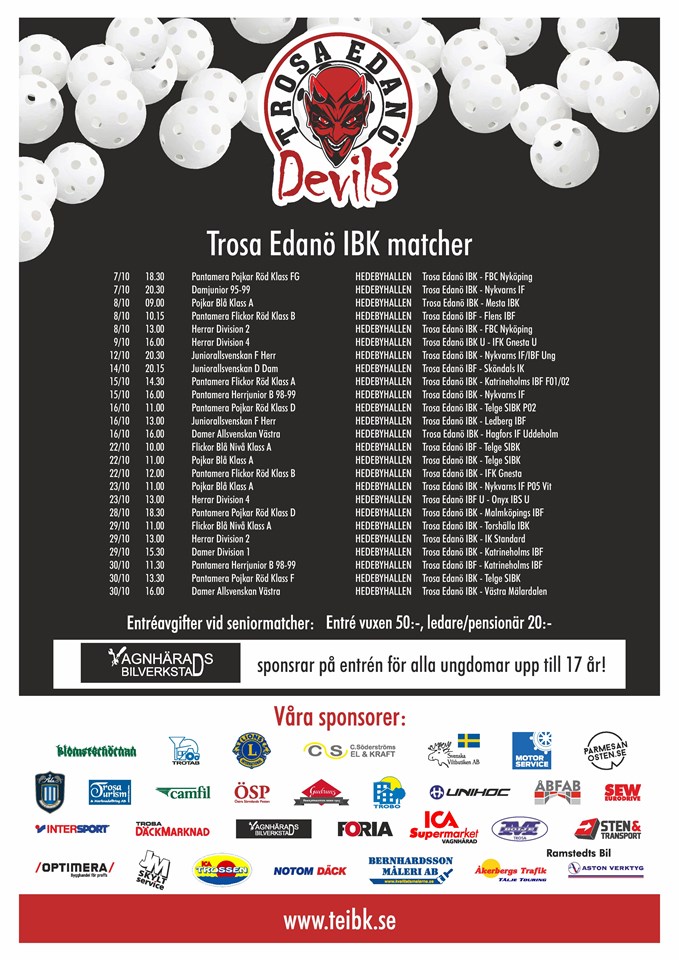 Nu får alla unga innebandyfans en jättefin present!! Våran sponsor Vagnhärads Bilverkstad sponsrar alla mellan 7-17 år med fritt inträde under säsongen 2016/2017 på Trosa Edanös hemmamatcher. Det gäller från och med nu!! Dessutom så har man chansen att köpa TEIBK kepsar för 100 kr!! Ordinarie pris är 150kr!! Obs endast Lördag!! Styrelsen Trosa Edanö IBK 6 okt 2016 0kommentarer