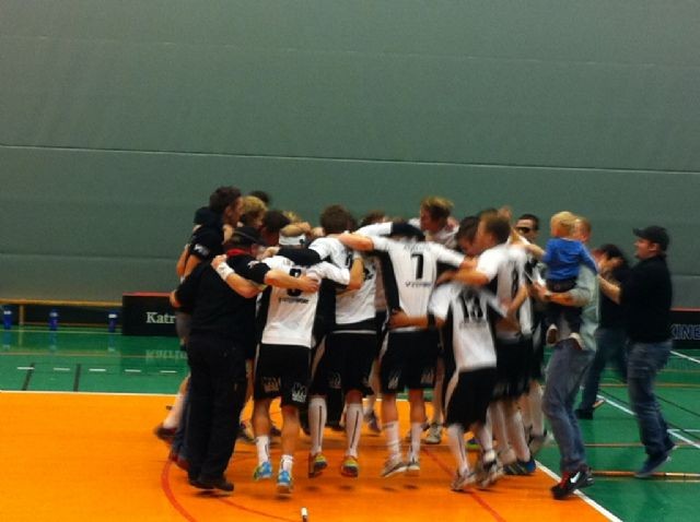 Efter en gastkramande halvblessyr borta i Duveholmshallen så kunde vi stå som seriesegrare säsongen 2011/12. Detta var målsättningen från första träningen vi gjorde i augusti. Fruktansvärd skönt att uppnå en målsättning. Extra roligt att uppnå någonting tillsammans som vi har gjort denna säsong. Hela gruppen har dragit åt samma håll HELA säsongen och vi har inte ens haft några motsättningar överhuvudtaget. Detta är ett fantastiskt gäng som kan gå hur långt som helst. Det finns så många vinnarskallar och positiva människor i denna grupp och jag är övertygad om att dem kommer visa det redan i påskhelgen. Påskhelgen bjuder alltså på kvalspel. Skärtorsdagen så åker vi till Visby och spelar mot Östergarns IK på långfredagen 6/4. På annandag påsk så väntar returmötet hemma i Devilsborgen, Hedebyhallen :) Vi i herrlaget skulle verkligen vilja tacka ALLA dessa supportrar som sjöng och dansade fram oss till segern i Katrineholm. Underbar stämmning ! Tack ! Nu laddar vi batterierna och ser med tillförsikt fram mot kvalet ! Matchfakta Sörmlands Nyheter Segerdusch