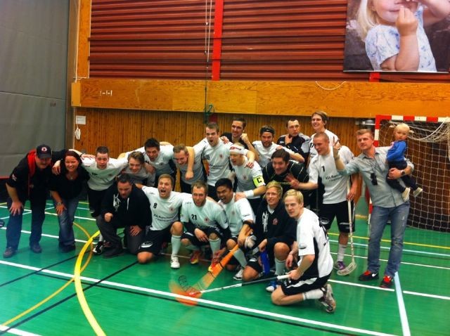 Efter en gastkramande halvblessyr borta i Duveholmshallen så kunde vi stå som seriesegrare säsongen 2011/12. Detta var målsättningen från första träningen vi gjorde i augusti. Fruktansvärd skönt att uppnå en målsättning. Extra roligt att uppnå någonting tillsammans som vi har gjort denna säsong. Hela gruppen har dragit åt samma håll HELA säsongen och vi har inte ens haft några motsättningar överhuvudtaget. Detta är ett fantastiskt gäng som kan gå hur långt som helst. Det finns så många vinnarskallar och positiva människor i denna grupp och jag är övertygad om att dem kommer visa det redan i påskhelgen. Påskhelgen bjuder alltså på kvalspel. Skärtorsdagen så åker vi till Visby och spelar mot Östergarns IK på långfredagen 6/4. På annandag påsk så väntar returmötet hemma i Devilsborgen, Hedebyhallen :) Vi i herrlaget skulle verkligen vilja tacka ALLA dessa supportrar som sjöng och dansade fram oss till segern i Katrineholm. Underbar stämmning ! Tack ! Nu laddar vi batterierna och ser med tillförsikt fram mot kvalet ! Matchfakta Sörmlands Nyheter Segerdusch