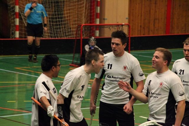 Det blev en rafflande upplösning i södervärnshallen vid lunchtid denna långfredag. Matchen mellan Östergarns IK och Trosa slutade tillslut 4-4 efter att bortalaget tappat en 1-4 ledning. Det blev en match mellan ung frejdig och tempostark innebandy(Trosa) mot "gammal", rutinerad och försvarsstark innebandy(Östergarn). Dock så visade vi upp ett ständigt tryck i gotlänningarnas zon utan att hitta ngt vägvinnande spel. Alltför många ggr så hamnar vi i "pointposition" med alltför långsamt spel och med lite för mycket skott i täck. Östergarn var väldigt bra i sin egen zon. Det är egentligen bara i den första perioden vi kan säga att vi spelar riktigt bra. Då hade vi bra fart på bollen och bra rörlighet. Östergarn får chansen att komma in i matchen då Linus Jonsson och laget drabbas av en 5minutare för farligt spel då Linus klubba helt oavsiktligt råkar komma upp i motståndarens ansikte. Vi klarar femminutaren med "bara" ett mål i baken. Men efter detta har vi svårt att komma igen. Vi börjar ta sämre beslut och det känns som vi har ett alldeles för lågt bolltempo. I tredje så hittar domaren en helt horribel utvisning då Linus Jonsson(igen) gör en av säsongens bästa tillbakaspring och snor bollen av motståndaren. Men då tyckte domarna att det var på ett regelvidrigt sätt och Linus fick en 2:a för otillåtet slag trots att han inte nuddat motståndarens klubba. mycket märkligt beslut från de annars duktiga domarna. I det efterföljande pp:t så gör Östergarn förstås mål. När det återstår 3 minuter så passar Lucas ö över bollen till sin backkollega Jeppe N och bollen studsar på ngt gummiskit (troligtvis från en sko), bollen studsar över Jeppes klubba till en helt friställd motståndare som inte gör ngt misstag på det friläget. Och med 1 och en halv minut kvar så lyckas även Östergarn kvittera efter att vi mycket olyckligt tappat boll i anfallszon och därefter hamnat på efterkälken. Motståndaren slår dessutom in bollen på halvvolley efter en felträff.. . . Visst kändes det lite tungt att vi "bara" får med oss ett kryss från ön, men faktum kvarstår att det nu är 0-0 igen !! Vinst är det enda som gäller på måndag. Kan låta som vi skyller på domare och otur i denna match, men det vill jag klargöra att så inte är fallet. Tur förtjänar man och det gjorde inte vi idag. Bäst idag var annars Robin Holmgren(bilden), som bl.a gjorde 3 mål. Lite extra beröm till Cronhamn och Orrmo. Nu firar vi lite påsk och så kommer vi till hedebyhallen på måndag för att spela upp oss i div.1 Självklart så hoppas vi på ett enormt tryck i hallen. Matchstart kl.15.00 9/4 VÄLKOMNA !!